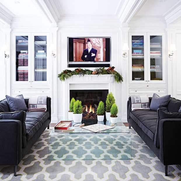 Simplicity in decorating small spaces is the basis of decoration. White candles on a silver tray will add extraordinary elegance to your windowsill. Two artificial dwarf firs, wrapped in burlap, will add some color to this winter landscape.
